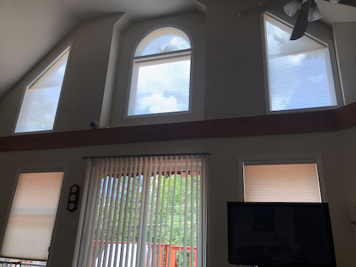 Cut-outs can be made for specialty-shaped windows or French door handles. Duette® and Applause shades are custom made to fit your windows and doors. Hunter Douglas cellular shades are also a practical window covering solution for skylight windows. Windows came in many shapes and sized. Shades On Wheels window covering experts help cover the following window shapes and styles:Circles or Half circles